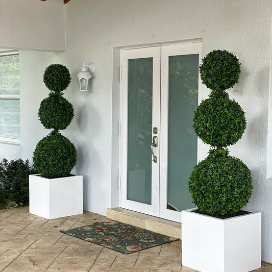 Topiaire triple boule avec grand pot en fibre de verre Block